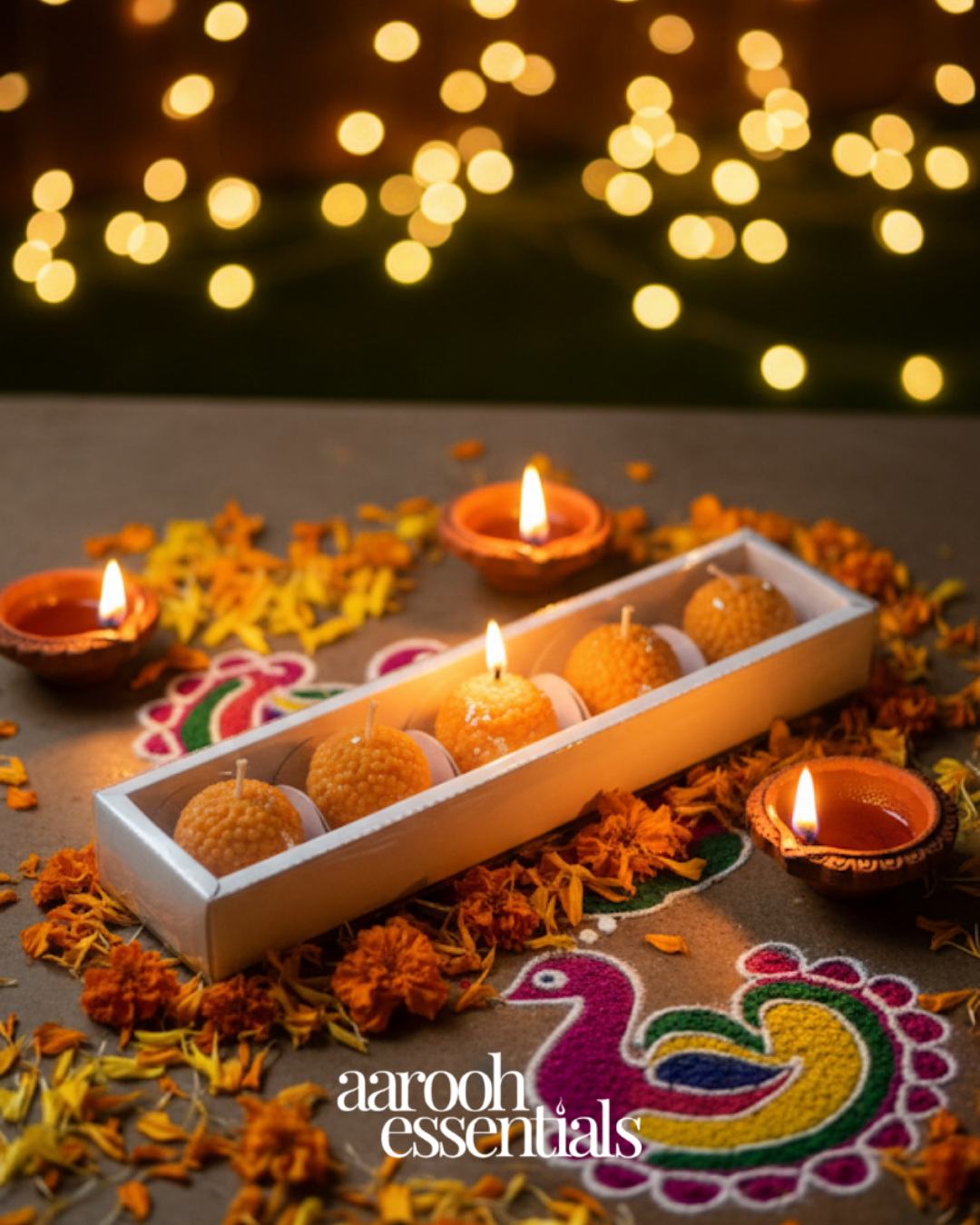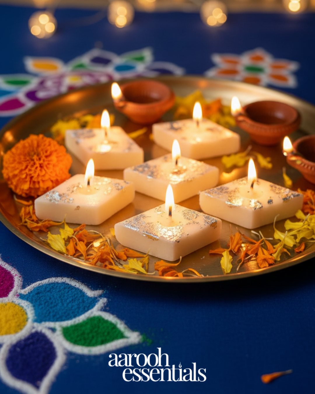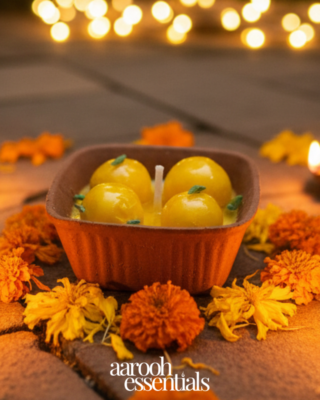 - Handcrafted Ladoo & Kaju Barfi candles designed to look just like your favorite festive sweets.