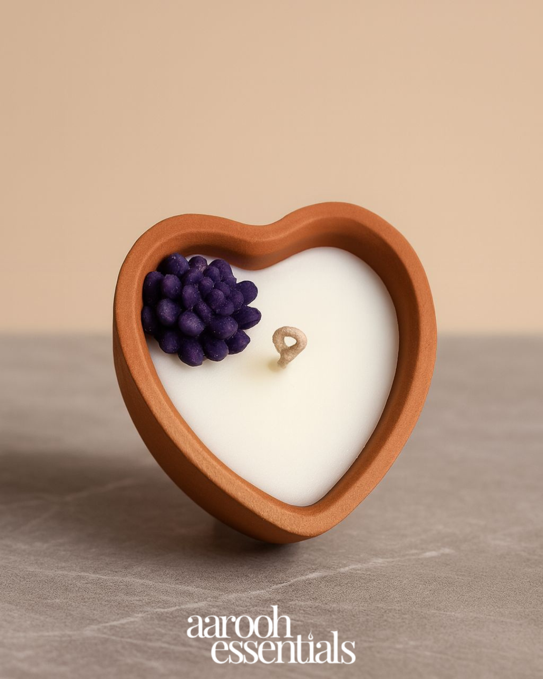 Add a touch of warmth and elegance to your space with this handcrafted heart-shaped terracotta candle. Filled with creamy white wax and adorned with a charming purple floral cluster, it’s perfect for romantic evenings, festive décor, or thoughtful gifting. The natural terracotta base gives it a rustic yet stylish appeal, while the subtle detailing makes it a centerpiece for any setting.