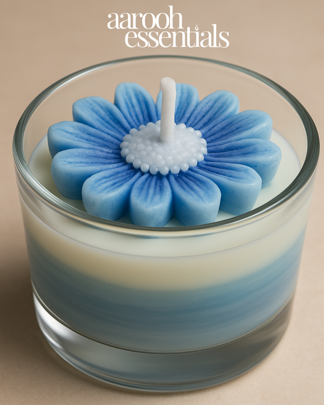 Bright, cheerful, and soothing, our Blue Daisy Candle is crafted with layered wax shades of blue and white, topped with a stunning daisy flower design. Hand-poured in a sleek glass holder, it radiates both elegance and freshness, making it perfect for home dΓ©cor, festive celebrations, or gifting. A true blend of artistry and serenity, this candle brings the beauty of a blooming flower into your space.