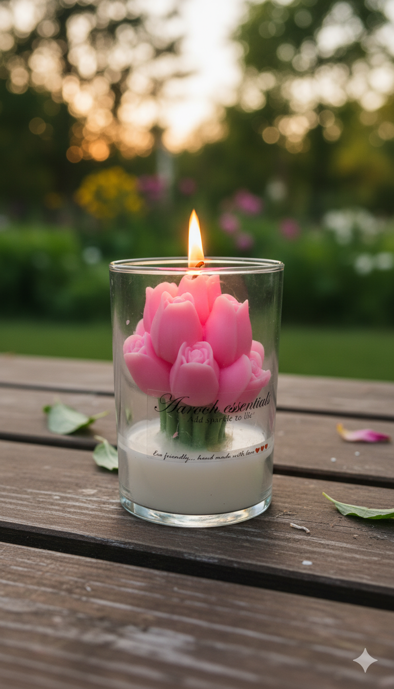 Bring the elegance of a spring garden into your festive space with our Tulip Bouquet in Glass candle. Encased in a sleek transparent glass, this candle features delicately crafted tulip blooms that symbolize love, new beginnings, and warmth. As the soft flame flickers, it illuminates the floral details, creating a serene and enchanting glow perfect for Diwali dΓ©cor, pooja settings, or as a centrepiece for your rangoli.